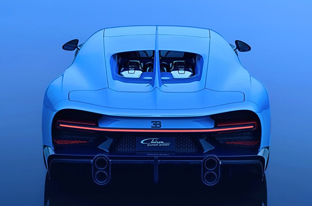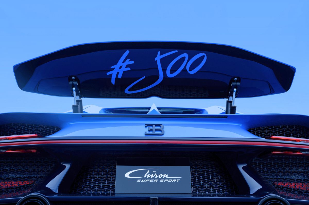 The Bugatti Chiron Super Sport L’Ultime makes use of the same colour split of ‘Atlantic Blue’ with ‘French Racing Blue’ that the supercar was unveiled with back in 2016. It is also adorned with unique hand-written places and events that “helped to build the Chiron”. There’s also a hand-written number ‘500’ on the body, the wheel caps and rear wing, and it is also engraved onto the engine cover housing the 1,600hp, 8.0-litre W16.