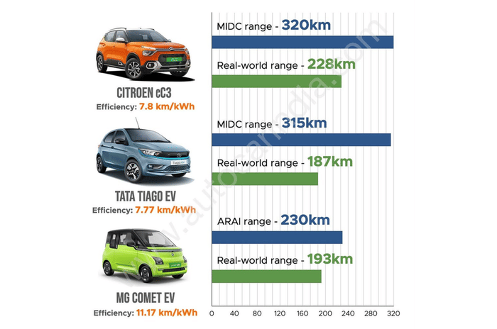 We test the MG Comet, Tata Tiago EV and Citroen eC3 to find out which electric car best adheres to its ARAI-claimed range.