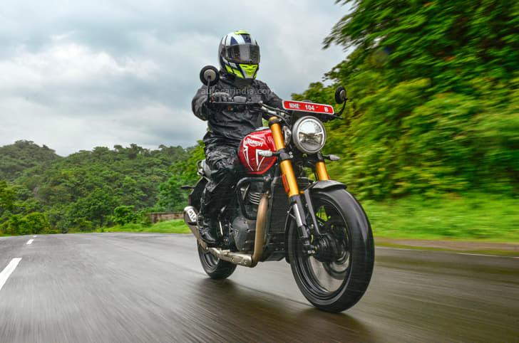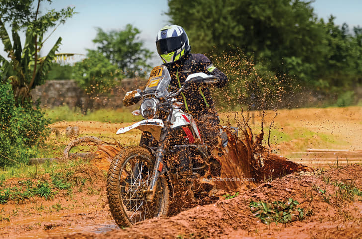 The Bond is a classically styled, good-looking thing, but it has some unique design quirks, like the noticeable kink on the left arm of the swingarm and the downward sloping tank. I love its light-hearted design, cheerful colours and how the off-road style seat flows into the fuel tank in one clean line. They all suggest that the Bond just wants to let loose and have a whale of a time.