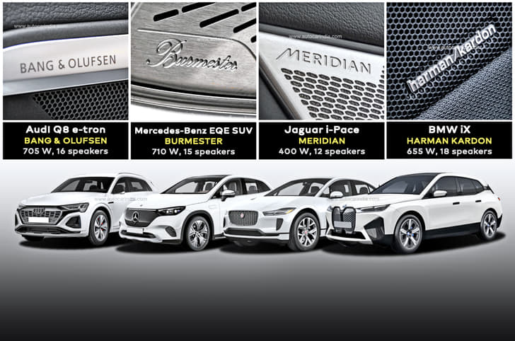 Our quartet of Avengers included the Audi Q8 e-tron, Mercedes-Benz EQE SUV, Jaguar i-Pace and BMW iX, all roughly in a similar price bracket but vastly different in their cabin design and system configuration, and each bringing to their cabin a different and premium branded audio system.