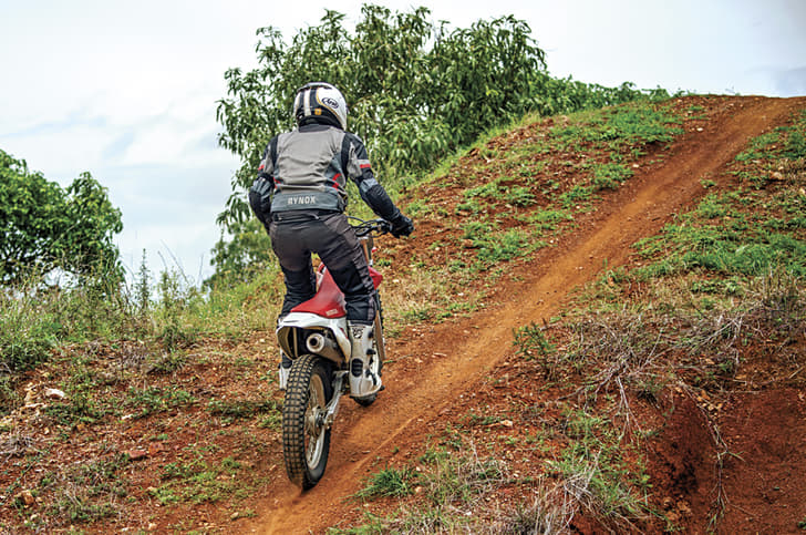 Sufficient revs provided this time around, the little Guzzi and I set off. Riding the trail bike around was quite a bit of fun, and while 50cc sounds tiny, this is a two-stroke we’re talking about, so it packed a small little punch. The third gear was the sweet spot; it was in this gear that the two-stroke peppiness was most apparent. This is also when the hollow but quick-revving RX-style exhaust note sounded its best.
