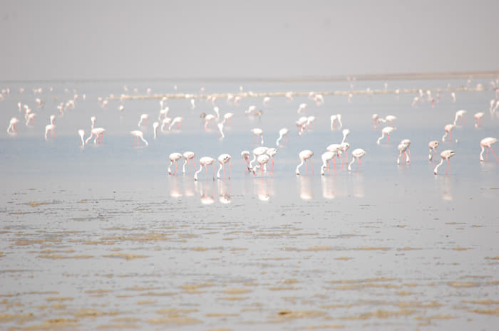 You will also find Nilgai, or Bluebull, and if you are lucky, desert fox, jackal, desert cat, caracal and striped hyena. The other fascinating sight at LRK is the colonies of flamingoes. Hundreds and thousands of them. LRK is supposedly the largest breeding ground of these birds in the world.