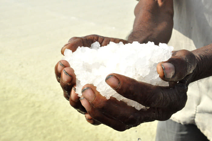 The only other living creatures to be found in this arid and harsh land are the agariyas. You can spot them in the middle of the Rann, surrounded by mounds of white salt crystals. Agariyas are the salt-pan workers. They come mainly from the Chunvaliya Koli, Ahir and Miyana communities, residing in 107 villages in the periphery of
