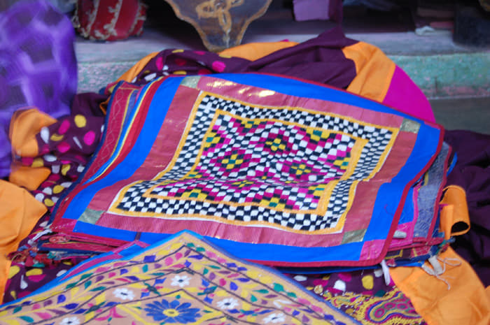 Once in LRK, where do you stay? You cannot stay in the Rann, but there are options in the little towns around LRK. We chose to stay at Rann Riders in Dasada. Don’t wait till the last moment to make your reservations though, since there are not many places around and the Rann Riders is the first choice for most. The cottages here are modeled after the kooba houses of the Bajania community of Dasada and the bhunga houses of the Rabaris of Kutch, decorated with mirrors, mud-plaster work and embroideries.