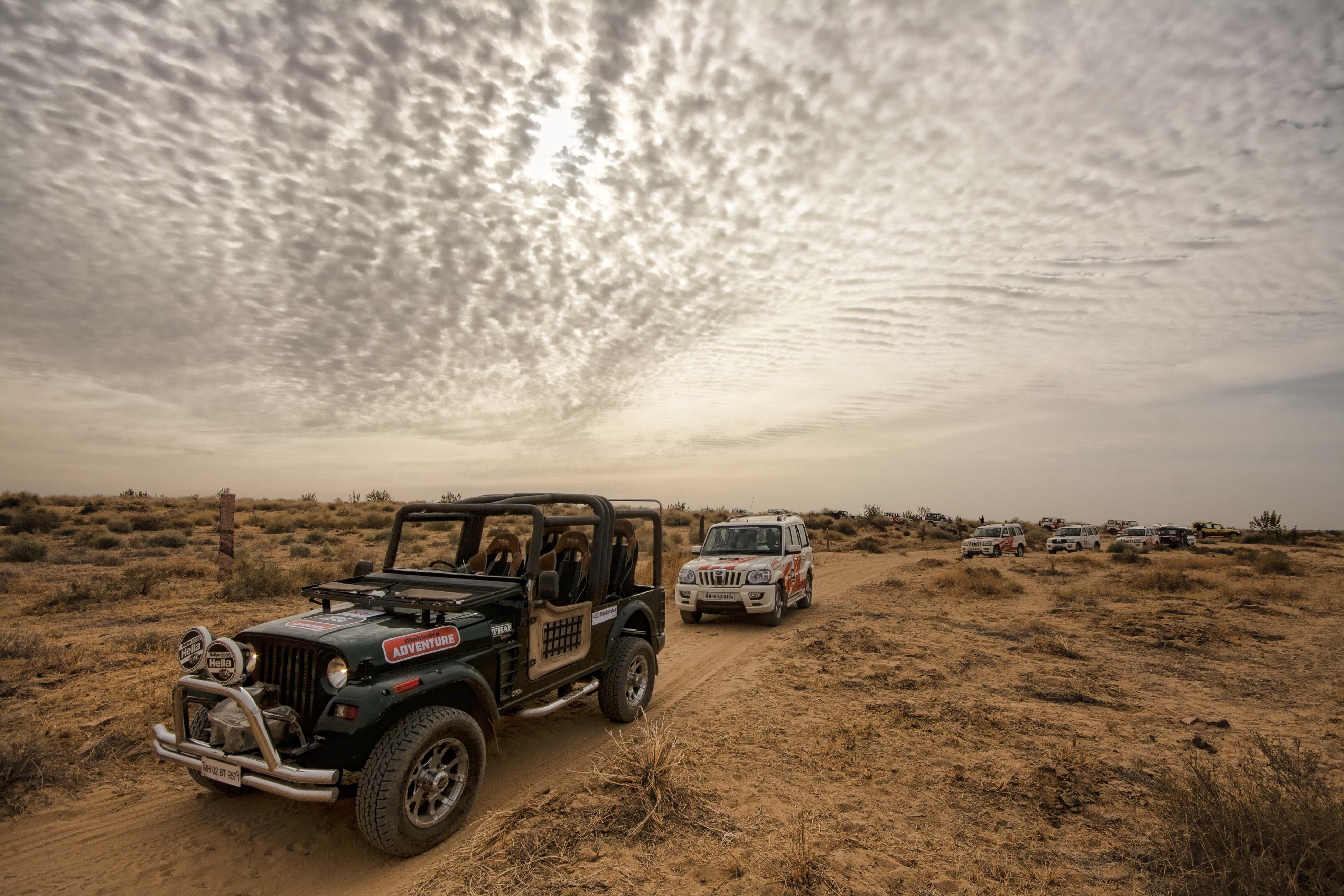 The silence of the unending desert and the afternoon siesta of the scavengers were disturbed when 50-odd Mahindra SUVs powered through the Thar desert one chilly February morning