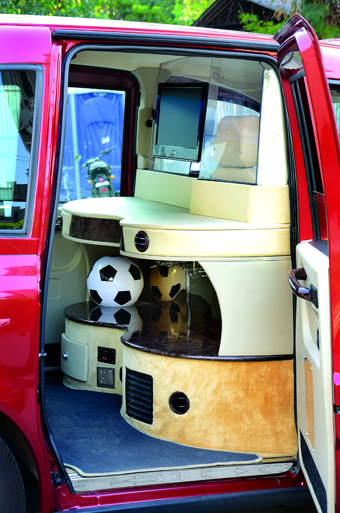 So what does it cost to buy one? Well, the reason we don’t have too many plying our streets is because they cost roughly between 20,000 and 25,000 GBP (Rs 16–20 lakh) under a hotel license. The taxi we drove belongs to the Oakwood Hotel, and from the outside it is a standard TX4. But Panchshil decided to make the interiors plusher to cater to its five-star clientele. The seats are now pure leather, there’s a 17-inch DVD screen mounted on the glass divide between the driver and passenger and a leather-encased bar counter. The company incurred a total cost of 7,000 GBP (Rs 5,73,000) on revamping the car’s interiors. But with our potholed roads, it makes more sense to hold one’s beverage in the hand rather than put it on the counter-top.