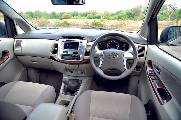 The Innova has the bigger cabin, but the flexible seating and clever packaging of the Ertiga’s cabin mean its third row is more usable than the Innova’s. The Ertiga’s sliding middle row helps generate more room at the back, and unless you’re travelling with a quartet of six-footers, the last row, for most practical purposes, is actually the comfier of the two. The Innova’s middle seat doesn’t slide as much but with all three rows up, it has more boot space. The Ertiga shares its dashboard with the Swift, so quality is quite good and the design is more appealing than the Innova’s dash. Still, quality is not as consistent as in the Innova.