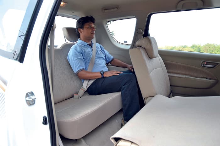 The Ertiga is based on a stretched Swift platform, which means you sit much lower than in the Innova. This makes getting in and out much easier. The front seats from the Swift are big and accommodating andfeel more comfortable than the Innova’s too.