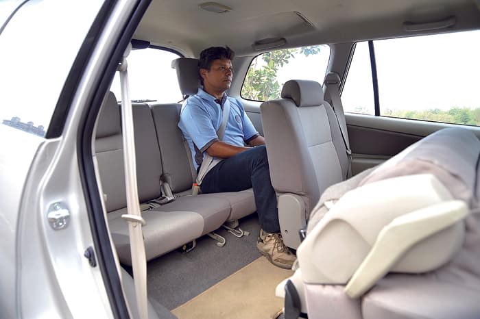 Thanks to the longer wheelbase, the Innova has a much better middle row in terms of space. The wide rear seat can sit three passengers with ease and seats are comfortable too. There is loads of legroom and if we were to nitpick, it would be about the seat squab, which is a tad short. However, the optional ‘Captain’ seats are supremely plush and offer a level of comfort the Ertiga can’t match. The Innova also has a second, dedicated air-con compressor for the rear passengers while the Ertiga makes do with a single one for the whole cabin. Still, the Ertiga’s middle row has good legroom and the soft seats are quite comfy, but the narrower cabin means three-abreast seating is more of a squeeze.