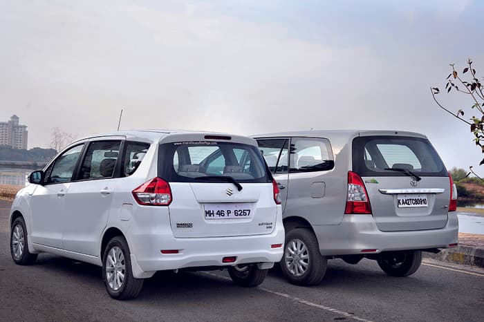 There’s no masking the fact that they both look like vans, but the Ertiga, with its compact dimensions and aggressive nose, looks more dynamic and is more attractive than the all-too-familiar Innova. But while the front looks sporty, the rear isn’t. It’s a little plain and the tiny wraparound lamps don’t help matters either.