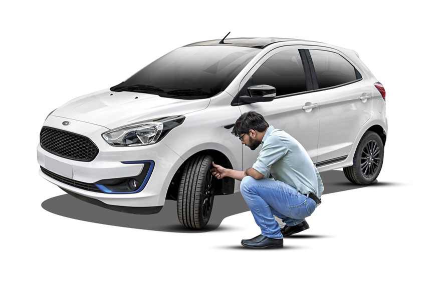 It’s recommended that you get your tyre pressure checked every two weeks, including that of the spare. This is important as improper inflation can result in uneven wear of the tyre surface. Also, wrongly inflated tyres have a higher chance of bursting when on highways. Make sure that you get the tyres checked when they are cold. The recommended tyre pressure is usually mentioned on the driver-side door sill and in the owner’s manual.