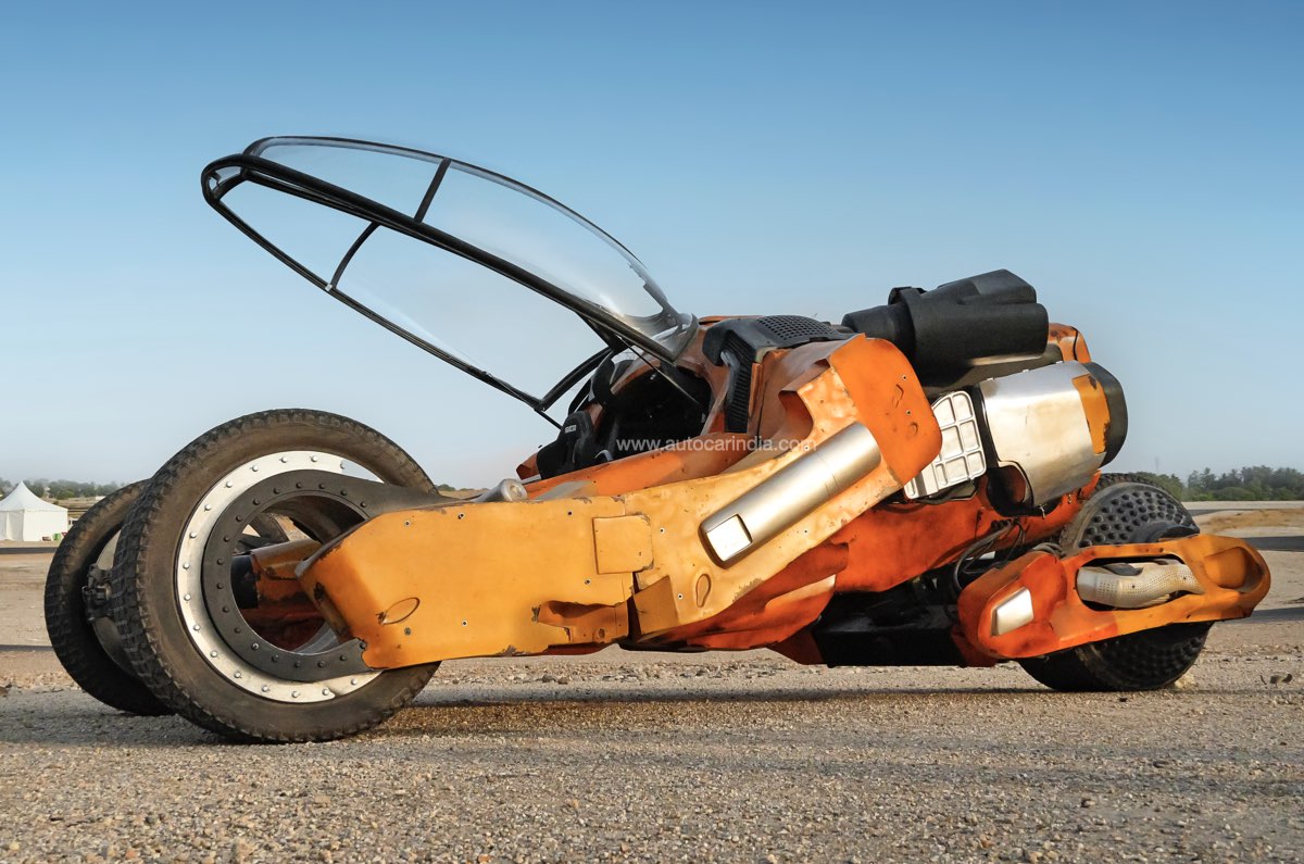 This is a car built for the promotions of the movie Kalki 2898 AD, and it was unlike anything I had ever seen. It’s a gargantuan machine: over six metres long, three metres wide, and two metres tall. It gets two hub-less wheels in the front, and the one at the rear can move on a vertical and horizontal axis. There is an all-glass canopy that shuts around the bare-bones cabin. Standing near the 34.5-inch rims, I was completely dwarfed, and the dimensions of this machine were mind-boggling. Kalki 2898 AD’s director Naga Ashwin is a car nut himself, and despite having a computer-generated car in the film, he decided that they should build a real one. So a team of engineers on the production side of the movie, Mahindra & Mahindra’s product development team and Jayem Automotives from Coimbatore joined forces to build this force of nature. And, of course, if it’s on wheels, we are happy to drive it.