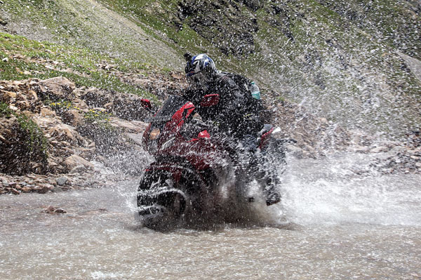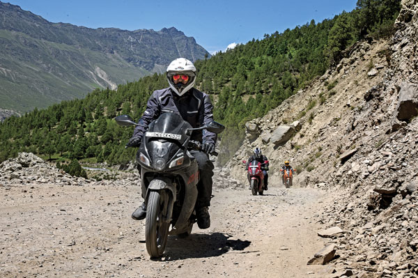 I was genuinely eager to get aboard the Tiger XCx. I had ridden the XRx a while ago and was mighty impressed with its cornering capability on well-paved twisty roads. The XCx on the other hand, seemed like it was the better bike for this off-road kind of scenario; what with its spoked wheels and extra suspension travel. As I swung a leg over the saddle, the differences started becoming apparent; this version of the Tiger sat higher off the ground, had a larger wind-screen and the handle-bars were wider. And it only got better once I got moving; ample amounts of suspension travel and a 21-inch front wheel smoothed out the rough terrain decently well. It’s amazing how much easier the job becomes if you just use the right tools. The Tigers felt like they had a lot of weight at the front-end; which means you need to be a bit watchful at slow speeds and muscle it while going faster.