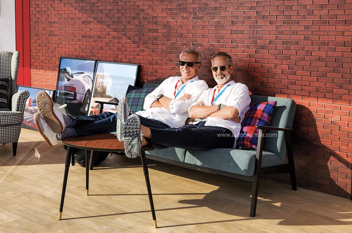 A particularly interesting inclusion was a special zone for Exclusive Manufaktur, Porsche’s customisation department, which had on display its latest one-off ‘Sonderwunsch’ creation. A ‘remaster’ of the 1974 911 Turbo that was gifted to Louise Piëch for her 70th birthday, but based on the new 992 Turbo S, its tartan interior and side graphics lovingly recreated for the modern age. And while there weren’t celebrity racing drivers like Mark Webber and Jackie Ickx this year, I do manage to run into a personal hero of mine. Enjoying the comfort of some bespoke Exclusive Manufaktur lounge furniture is Andreas Preuninger, head of Porsche’s GT division and creator of some of the finest road-going racers to go on sale. We have an animated chat about downforce, suspension and India’s new race circuits; I am a happy camper indeed.