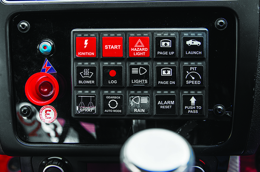 Getting into the driver’s seat is nothing short of an acrobatic task, due to the side impact bars (part of the roll cage) running the breadth of the door cavity. Though, once in the body-hugging OMP racing seat and buckled with the four-point racing harness, the driver is literally pinned down, irrespective of the Gs this car pulls around corners. The seat doesn’t adjust and neither does the Alcantara-wrapped sports steering. The digital instrument cluster is excellent when it comes to readability and there’s even a sweet F1-car-like LED gearshift indicator. The dashboard fascia has some large, yet easy-to-read buttons, including those for start-up, hazard lights and launch control, among others.