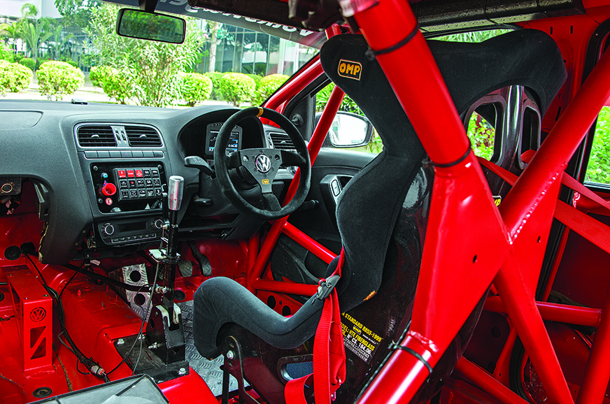 The cabin is completely stripped down to the bare minimum. What it has are essentials, like a racing seat with a four-point harness, roll cage, fire extinguisher and basic driver controls. Those aside, there are no carpets, door pads or creature comforts like air-conditioning and power windows to speak of. In fact, the VW Motorsport team has taken weight reduction so seriously that it tips the scale at 1,150kg (including the driver); that’s precisely how much the TC4-A category demands. Is there scope to reduce more weight? Sure, with the glass windows being replaced by plastics, doors and boot lid gotten rid of, and use of carbon fibre, it is easily possible to shed even more weight, “but that’s left for phase II of the project” Sirish revealed.