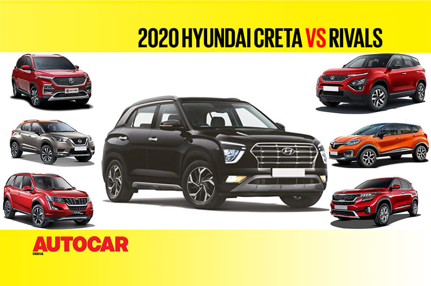 You've seen our review of the all-new Hyundai Creta, and while we'd have liked to have brought you a comparison test with all its rivals, we are all at home for this lockdown. So ,the next best thing we can do is give you all the facts and figures to help you make your decision. So sit back and enjoy - here is the Hyundai Creta vs the Kia Seltos, Tata Harrier, MG Hector, Nissan Kicks, Renault Captur and Mahindra XUV500.