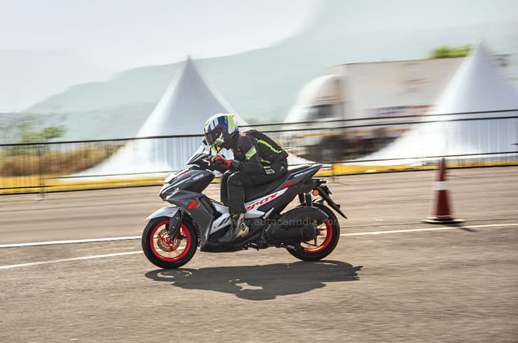 From that point on, it was twisties all the way to Aamby Valley, where once again, the Aerox was quite happy to go toe-to-toe with bikes that are built to be corner carvers. Of course, it didn’t quite have the grunt of something like the Trident 660 or even the RC 390 that were along for the ride, but like a determined little ant, it was always clawing back ground in the twisties. The only caveat is that you need to make sure you lift your butt off the seat a little when you encounter mid-corner bumps – the Aerox is never unsettled or pushed wide by them, but it does send the jolts through to you quite sharply.