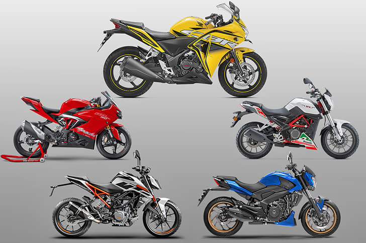 Benelli TNT 25 Rs 1.93 lakh | TVS Apache RR 310 Rs 2.05 lakh | KTM 250 Duke Rs 1.77 lakh |