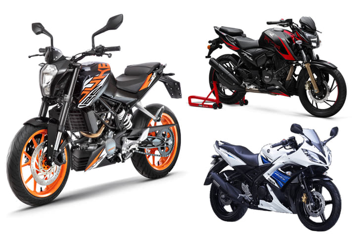 KTM has just launched the 125 Duke in India at an introductory price of Rs 1,18,163. Taking into consideration that the 125 Duke has no direct rivals, we’ve compared it to two bikes in the same price bracket – the Yamaha R15 S (Rs 1,16,746) and the TVS Apache RTR 200 4V ABS (Rs 1,10,805). The new 125 Duke is the most affordable KTM bike to go on sale in India and, unlike the international-spec model, the Indian version is based on the KTM 200 Duke. The Yamaha R15 has been at the forefront of the sub-150cc, performance inclined market ever since its launch. We’ve added the Apache RTR 200 4V to the mix as its ABS variant’s pricing falls in the same category. While we are yet to ride the KTM 125 Duke, this spec comparison will give you an idea on how these motorcycles stack up, on paper.