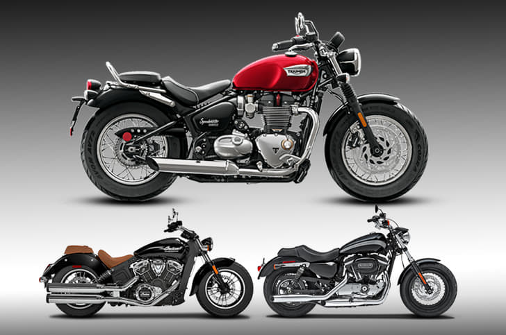 British bikemaker Triumph takes on two big American marques – Harley-Davidson and Indian – with the Speedmaster. The motorcycle is based on the Bonneville Bobber, however, unlike the Bobber it is a traditional cruiser and features curved back handlebars and forward-set pegs for a comfortable riding posture. Thanks to this and its twin-cylinder, 1,200cc motor, it locks horns with the Harley-Davidson 1200 Custom and the Indian Scout. Let’s see how the three cruisers fare on paper.