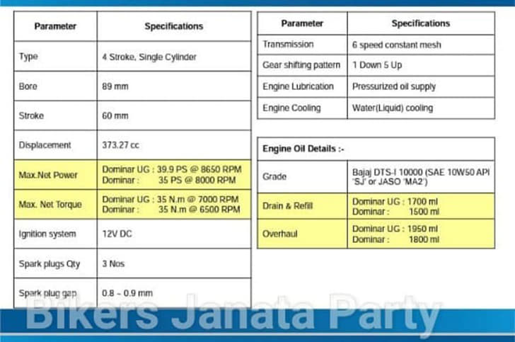 Since the bike was first spotted testing, the internet has been abuzz with speculation of the Dominar's powertrain updates. Now, from the specifications on the sheet, it can be seen that while the updated Dominar continues to be powered by a 373.3cc engine, it produces 39.9hp at 8,650rpm – a substantial 4.9hp increase over the 35hp at 8,000rpm seen on the outgoing model. While peak torque remains unchanged at 35Nm, it now arrives at 7,000rpm in comparison to 6,500rpm as seen on the current bike.