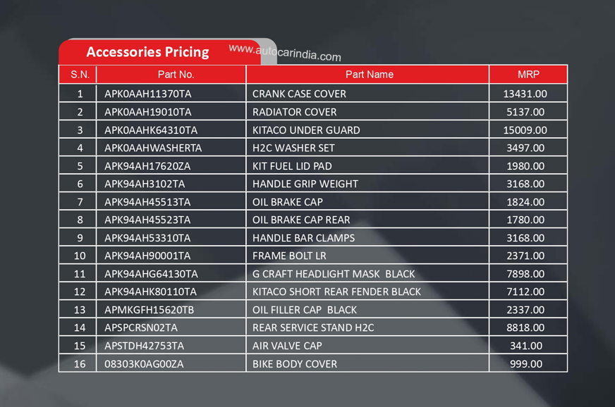 | Honda CB300R accessories price list | |