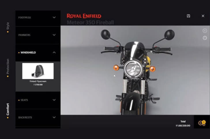 The images that leaked online yesterday also reveal that the upcoming Meteor 350 will feature several optional accessories much like on the company's Classic range and 650cc models. These include aftermarket seats, windscreens, foot pegs, and even panniers.