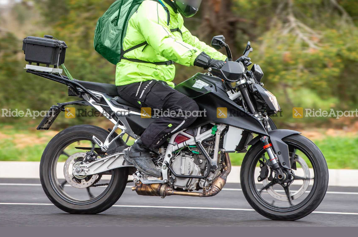 The test mules we see here bear some body work, notably a larger tank and sharp looking tank extensions that seem to be inspired from the twin-cylinder Dukes. Then there's the new five-spoke alloys that seem to be taken off the new KTM RC390.