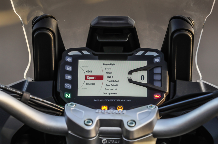The electronics suite on the Multistrada range is formidable. Even the base 1260 comes equipped with IMU controlled cornering ABS and traction control, wheelie control, cruise control, 4 riding modes, vehicle hold control and Bluetooth connectivity. As mentioned above, the S variant gets a quickshifter, a colour display and electronic suspension in addition to everything offered on the base model, making it a very feature-rich motorcycle indeed.