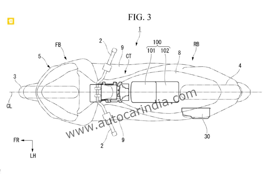 The Honda PCX electric scooter was first showcased in India at the 2018 Auto Expo and the patent drawings show a similar design theme. It has a large front apron with twin integrated headlights and a windscreen, and its side panels flow towards the tail section in typical maxi-scooter style.