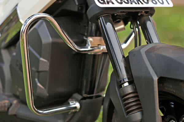 For the Chieftain Limited, Indian has gone for a larger 19” front wheel which now rests under a chopped up front fender. Gone is the tall traditional Indian Chief fender as well as the light-up ‘war bonnet’ fender ornament. This has really exposed the gorgeous 10-spoke front wheel in all its glory along with the bike’s twin 300mm front disc brakes. The bike still retains all the other signature Chieftain touches such as an electrically adjustable windscreen, remote lockable panniers, touchscreen infotainment system and even its 100-watt audio system built into the fairing. But to help differentiate it a little more, the bike gets colour-matched headlight bezels and a metal stud-free leather seat.