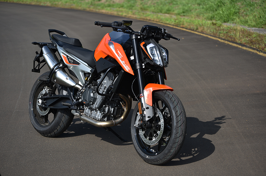 The 790 Duke is powered by a 799cc, parallel-twin engine that makes 105hp and 86Nm of torque. The bike is equipped with a 43mm, non-adjustable USD fork and a pre-load monoshock, both sourced from WP. Other features on offer include a full-TFT display and the most comprehensive electronic safety package in the segment, which includes Bosch Cornering ABS with a Supermoto mode, lean-angle-dependant traction control, launch control, a bi-directional quickshifter and four riding modes (including a customisable Track mode).