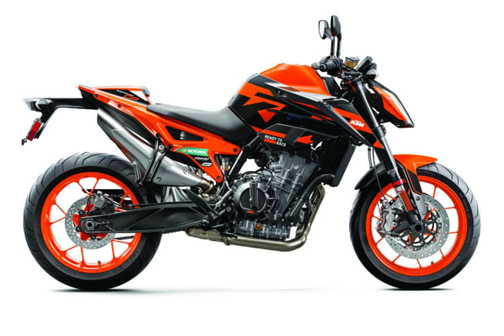 Changes on this new GP version of the 890 comprise a new orange and black MotoGP inspired livery, orange wheels and a pillion seat cowl. On the whole, the 890 Duke GP is visually a good deal more orange than its siblings.