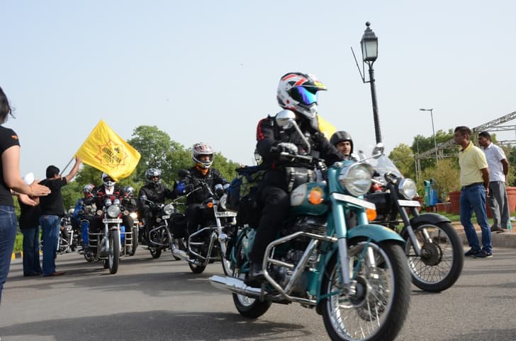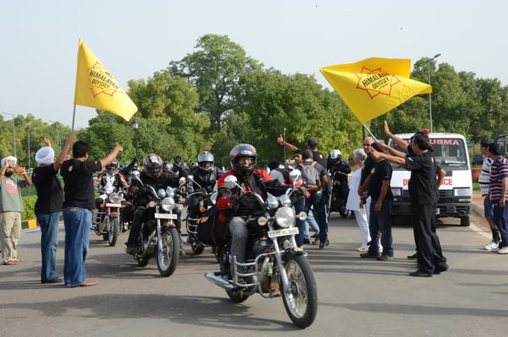 India Gate, New Delhi saw the 10th chapter of the iconic Royal Enfield Himalayan Odyssey flagged off today by Mr Shaji Koshy senior vice president sales and marketing, where 100 riders from around the country and world will ride to Khardung La. These riders will travel 2700kms in twenty seven days to the highest motorable road in the world and will return to India’s capital on 8 July 2013. This cavalcade will tackle challenging terrains of Parwanoo, Narkhanda, Keylong, Sarchu via Kalpa and the Kaza region. These two separate groups starting off from Delhi will meet each other at Leh on 30 June 2013. On this very day Royal Enfield have organised its Reunion North in Leh where participants will take part in a slow race, assembly war, figure of eight and carry your bike. The Indian marquee has also organised a celebration ride around the city of Leh where all 100 riders will participate.
