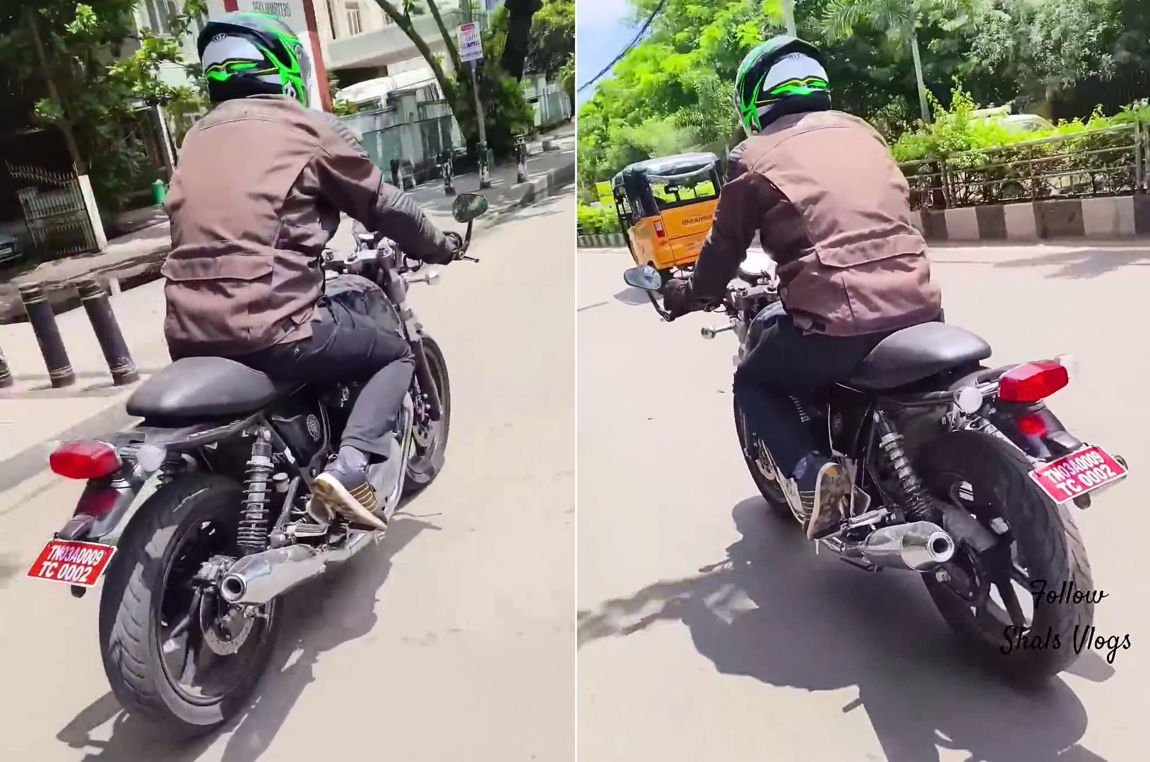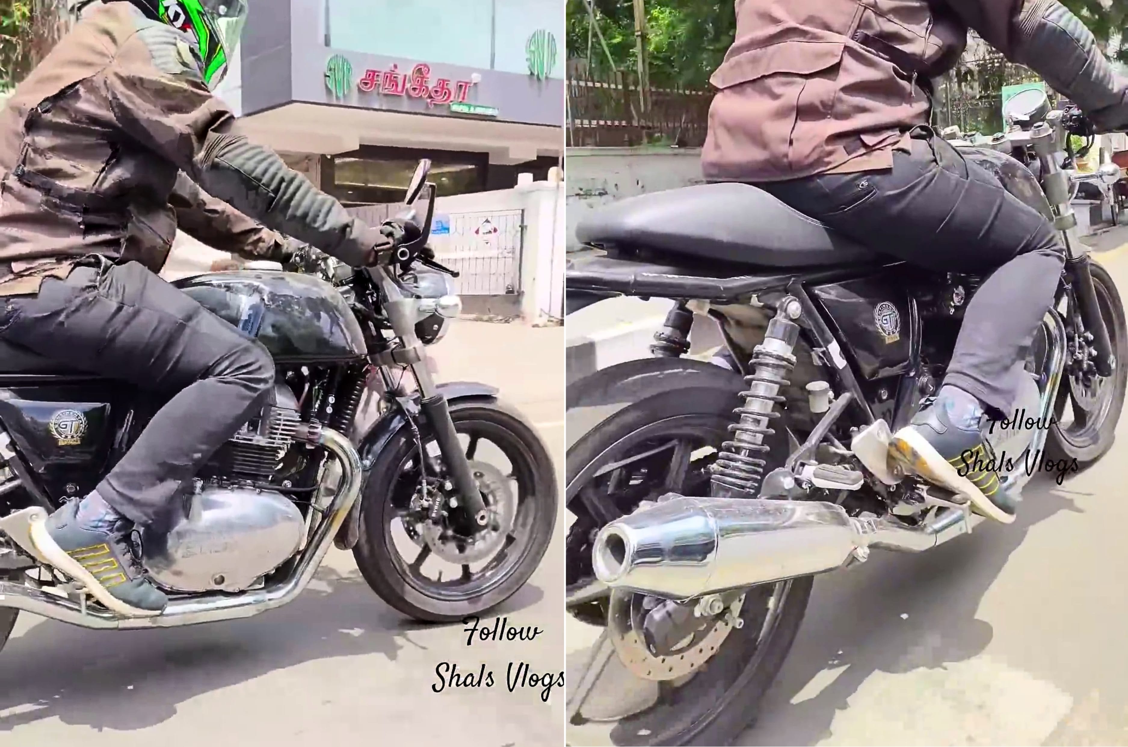 The test mule seen here doesn’t have a quarter fairing as we’ve seen on some previous Continental GT spy images. The engine block isn’t clearly visible in these images, although the bare metal finish on the casings is similar to that of the 650cc model. What is apparent, however, is that the shiny chrome exhaust mufflers have been redesigned and appear shorter front to back, although they still do jut out a fair bit. These slimmer end cans should address – at least partially – one of the biggest concerns with riding the Continental GT in traffic.