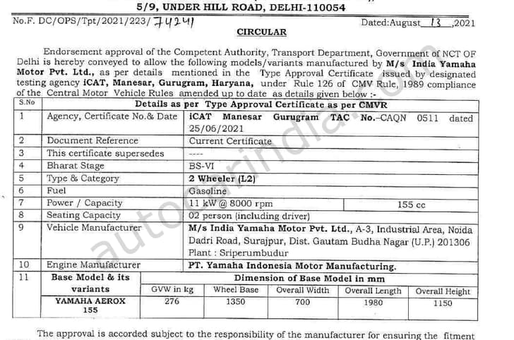 Yamaha has obtained type-approval for its Aerox 155 scooter in India, indicating that an official launch is just around the corner.
