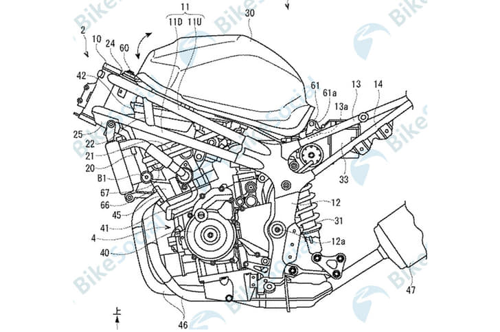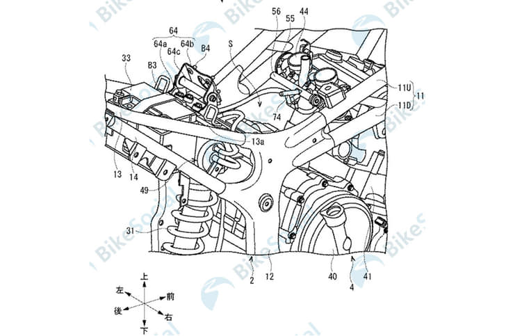 The patent application was finally published in Japan on March 22, 2018, having been submitted in late 2016. Curiously, the text accompanying the patent application doesn’t actually pertain to the steering or suspension system itself, but rather to a system used to right the bike once it has been leant over.