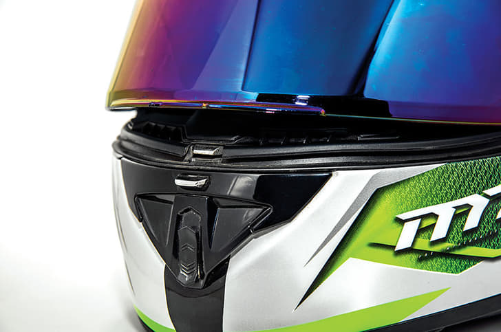 Another impressive feature is the ‘ClickRelease’ visor-changing mechanism; it is a lot faster and easier to use than the mechanisms I have used on my AGV and Arai. That said, the way the visor closes is extremely unsatisfying. It doesn’t click shut into the closed positon in an assuring way. I don’t think I can ever get used to that and will always end up double-taking if I have really shut it. But, that doesn’t affect the usability, and the rubber gasket that sits around the visor does a fine job at keeping the air out.