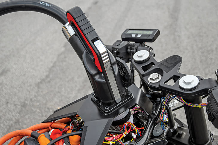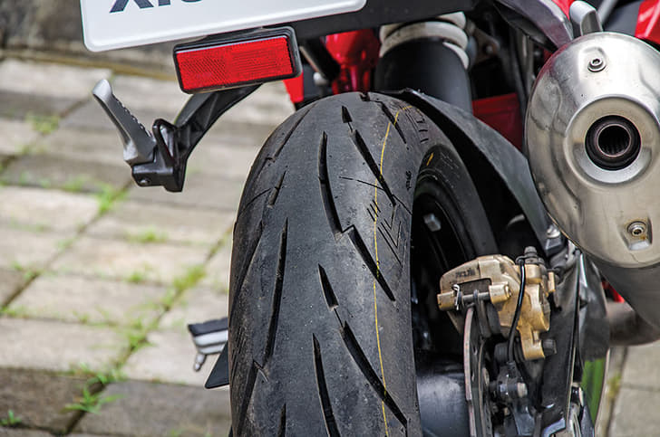 I wouldn’t be too confident wading through a river on it, though (unlike on something more manageable, like the SWM Superdual T), and what also snips away at your confidence is the top edge of the fuel tank, which is exactly where you’d want to grip the tank. As a result, you are left managing the weight with either the steering or with your feet, and both result in instability and fatigue, which is not very nice. Another thing to consider is the braking. The bite and performance offered is actually terrific (on both variants) but it lacks in feel and progression . More than one of our abused test bikes also featured a judder every time we went anywhere near the front brake (I’ll put it down to a bent rim for now) and this didn’t make life much better.