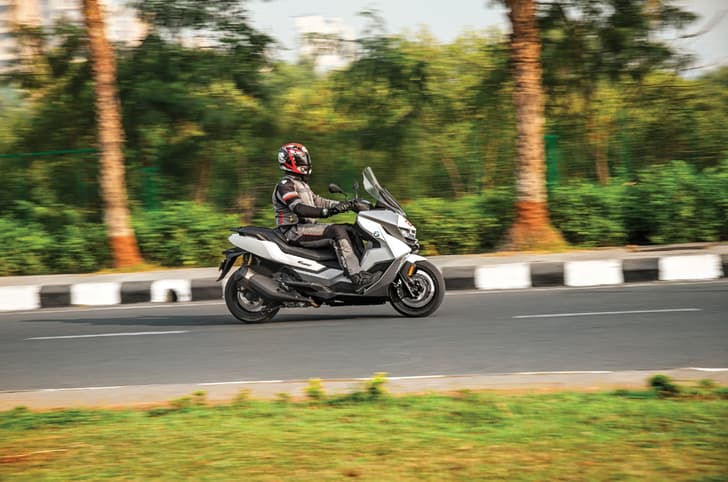 Handling is another strong aspect of the scooter. Despite the long wheelbase that stretches over 1,500mm, the scooter feels quite agile. BMW has got the weight distribution spot on and the scooter feels super stable in a straight line or around corners. The wide and grippytyres also play their part in adding another layer of confidence in the scooter’s abilities.