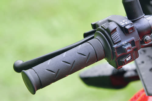 The Strada comes with shapely and functional mirrors, and integrates the front turn signals into its knuckle guards. The heated grips offer good feel and reach-adjustable levers are available on the premium bike, as is keyless access. A button clicks open the key in switchblade fashion and is needed only for filling fuel, opening the seat or a pannier box.