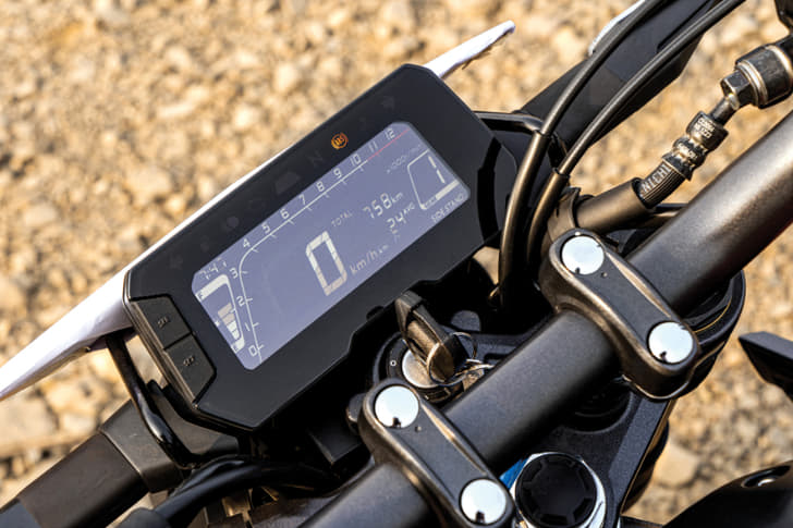 There’s also a charge level indicator split into eight bars, but its usefulness is limited. Depending on whether you’re accelerating, coasting off the throttle or braking, the charge level can go up and down by as much as four bars. That makes it hard to know exactly how much battery charge you actually have left.