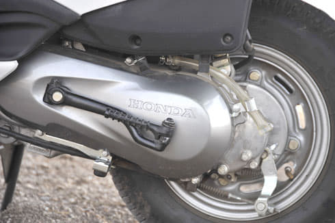 What Honda has taken care of is to ensure the new scooter retains the comfortable riding feel as experienced on the original model. The seat is large and well padded and the riding posture remains the same — upright and commuter-friendly. A linked suspension is used at the front, with a single shock and stressed member engine cushioning the rear. The new Activa provides a Tuff Up tube for its rear tyre to reduce the chances of a puncture. Another feature, found only on the top-end Activa, is Combined Braking System or CBS which is mechanically operated and works to help brake the scooter in shorter distances with better stability. CBS works with the left brake running twin cables to both drums, to simultaneously activate both brakes. The right, or front brake lever, remains committed to operating only the front drum when depressed, just as on any normal scooter. Ride quality remains just adequate, the same as on the earlier scooter, as do handling and cornering manners which makes the Activa thankfully light to manage in crowded Indian city riding conditions. Our best stopping distance and time from 60kph on the new Activa was 19.87 metres in 2.41sec.