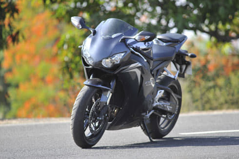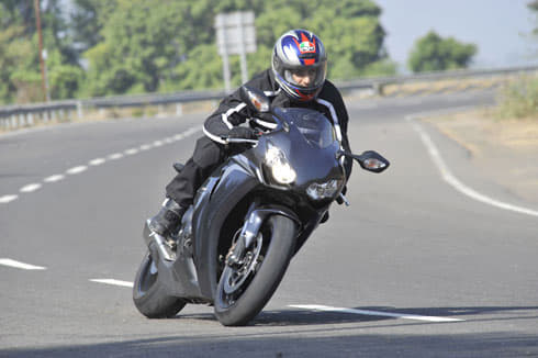 The combined ABS system works so well that we could never feel it working. Handling is surprisingly light, and cornering ability was as sharp as we expected. An electronically adjusted steering damper made the CBR easier to steer at low speed, and progressively stiffened damping to keep us safe at high speeds.