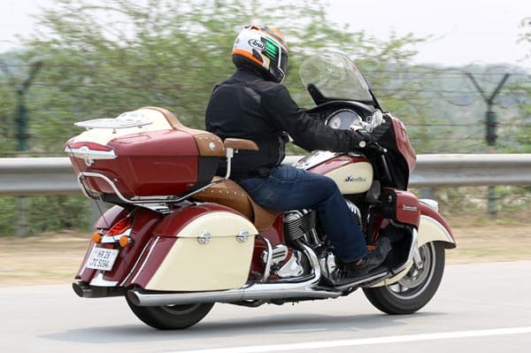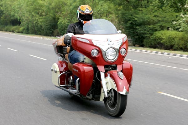 This is one bit of magic that Indian has managed to pull off with all its bikes based on the Chief. The Indian seems to shed a couple of quintals the moment you get going. This is down to the well-balanced chassis, steering geometry and suspension setup this bike has. Speaking of steering geometry, the Roadmaster (just like the Chieftain) has its forks raked in further to 25 degrees. This allows the front end to feel nimble even when it has all the weight of that massive front fairing over it. The bike turns in very easily, precisely and with a lot of confidence. Making your way through traffic or even around corners is no problem at all. Even the ride quality is rather well handled. The 46mm front forks and air adjustable monoshock at the back handle big bumps rather well and the ride is very pliant for the most part. It’s over sharp bumps and potholes where the ride feels rather harsh. However, for bringing all that mass to a halt, the ABS-equipped brakes feature twin 300mm front discs and a single 300mm rear disc, providing a surprising amount of stopping power and great feel as well.