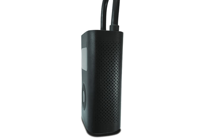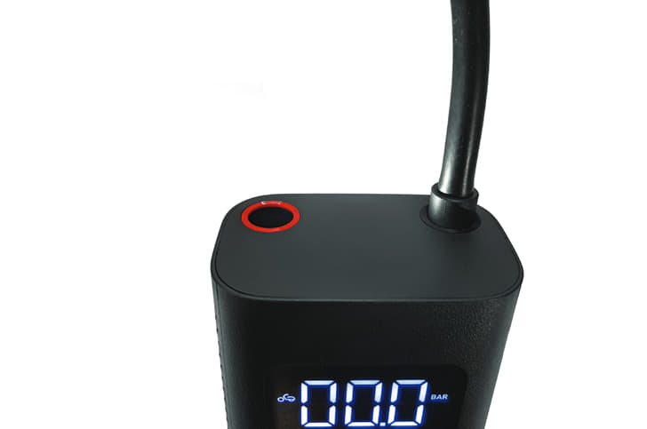 To turn the device on, you simply have to pull the hose out of the left side, which is marked with a red ring. This hose has a rotary attachment that screws onto the tyre’s valve. Once firmly screwed in, the big LCD display shows the current tyre pressure; the gauge accuracy is quoted at ±2PSI. This system is very easy to use and has negligible air leakage when the hose is unscrewed.