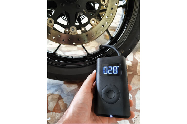 In operation, the device is loud, but not unreasonably so. After about 6min spent, collectively, topping up about 10PSI in both tyres on the 790 Duke, the compressor was warm, but not hot; although the hose gets surprisingly toasty. You can preset desired pressures and the pump will cut off automatically on reaching it.
