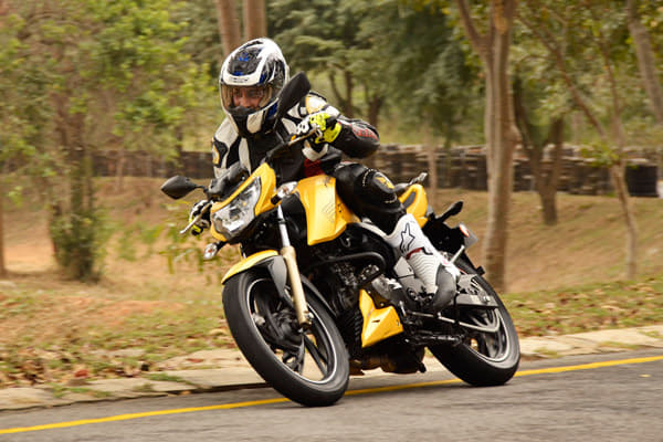 The new TVS uses a conventional tubular steel frame, with TVS telling us key areas in the chassis have been stiffened to help handling. Suspension is telescopic in front, with dual shock absorbers at the rear, including a TVS-designed ‘Series Spring’ technology. The swingarm is box section steel. Ride quality is good, and the 2016 Victor handles with light feel, steering giving the rider a neutral, precise feedback. Cornering manners are par for this class, with the bike riding on tubeless tyres front and rear offering adequate grip. The tyres are a softer compound, branded Remora and made by TVS.