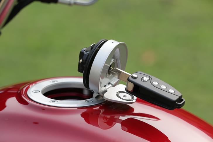 The Continental GT has been painstakingly re-created by Royal Enfield, with such a keen eye for attention-to-detail. Smashing looking, and with standout styling, the GT shows off classic lines from a magical era long since gone. The motorcycles round headlight is surrounded by an alloy steering brace and clip on handlebars that house Royal Enfield typical switchgear and rider controls. Royal Enfield will sell after market bar end mirrors for the GT, and we couldn’t recommend these more, for being so functional and solid, despite their tiny size. The GT comes with an elongated 13.5litre fuel-tank, tastefully adorned with neat logo, and equipped with a beautifully sculpted filler-lid. This leads into its single saddle (dual seat available as an optional) with smart exposed red stitching and a rounded tail surround. True enthusiasts will admire the GT’s exposed frame sections around its flank panels, its dual colour metal mudguards, alloy constructed spoke rims, as well as smartly shaped chrome silencer. Continued..